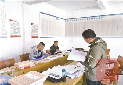 云南省昌宁县委第四巡审联动工作组在耈街彝族苗族乡金马村查看工作台账。李平远 摄